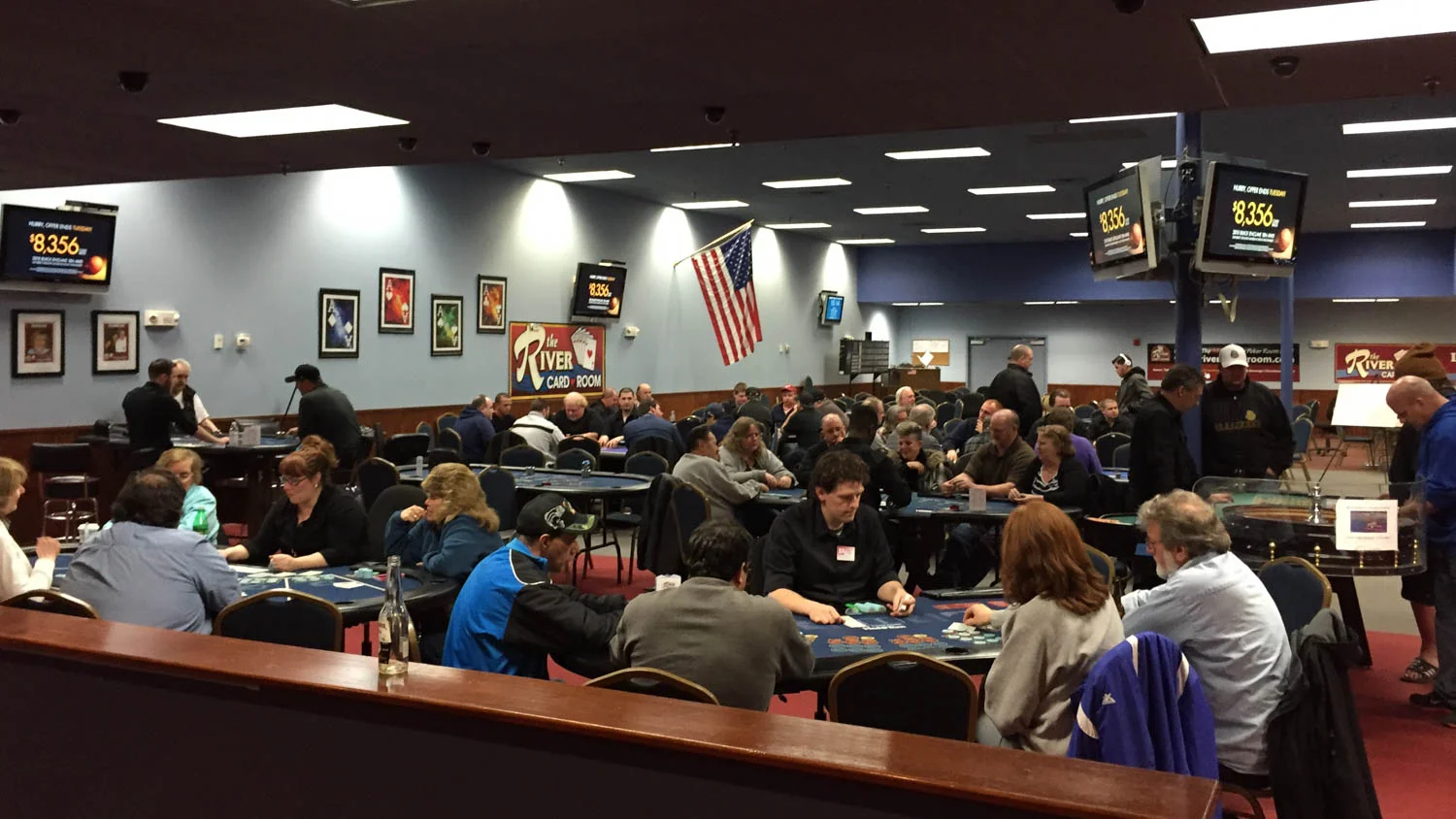 The River Card room is located in a "strip mall", in the quite town of Milford, NH.