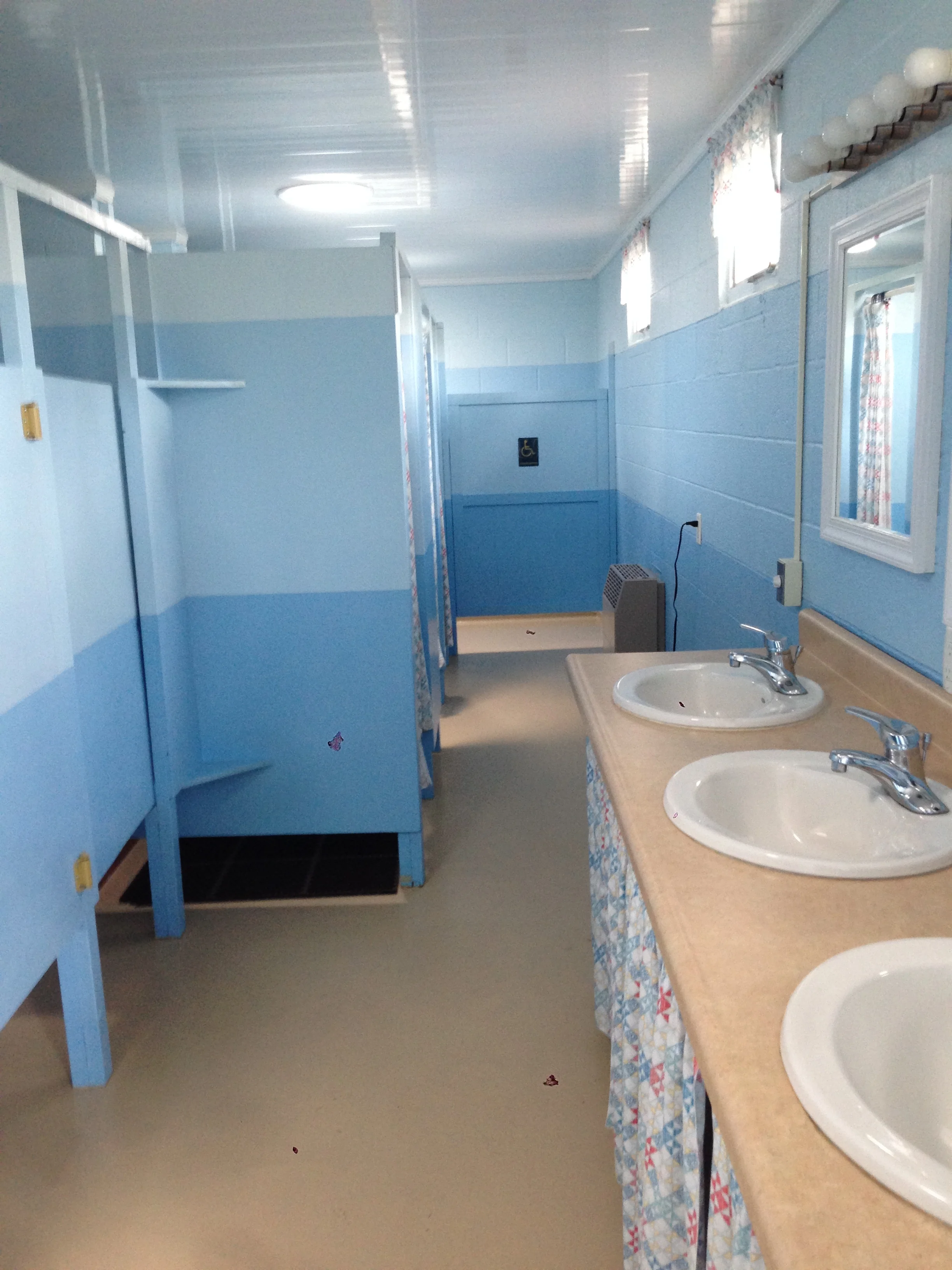 The Showers and Restrooms are very clean, with plenty of space.