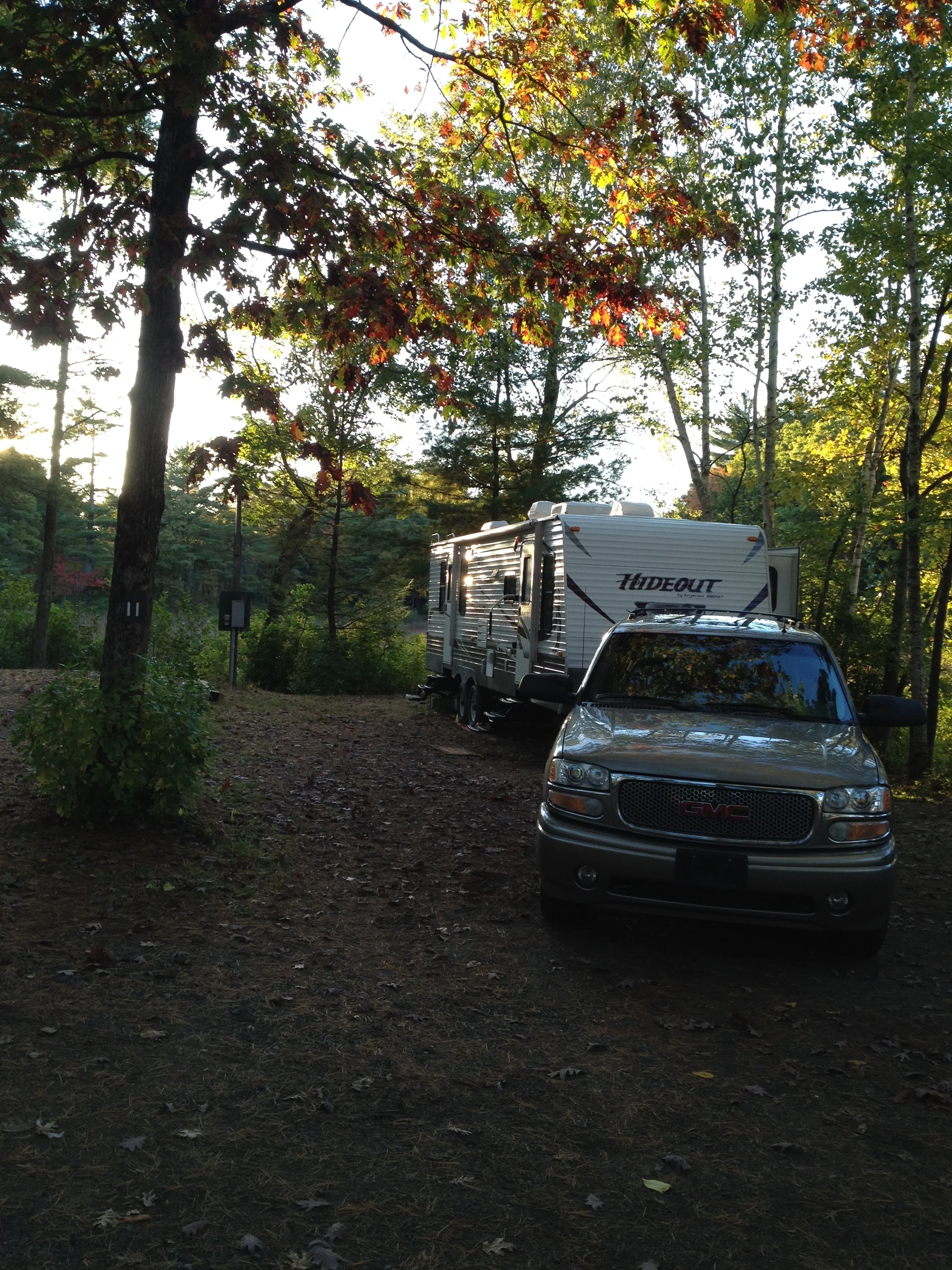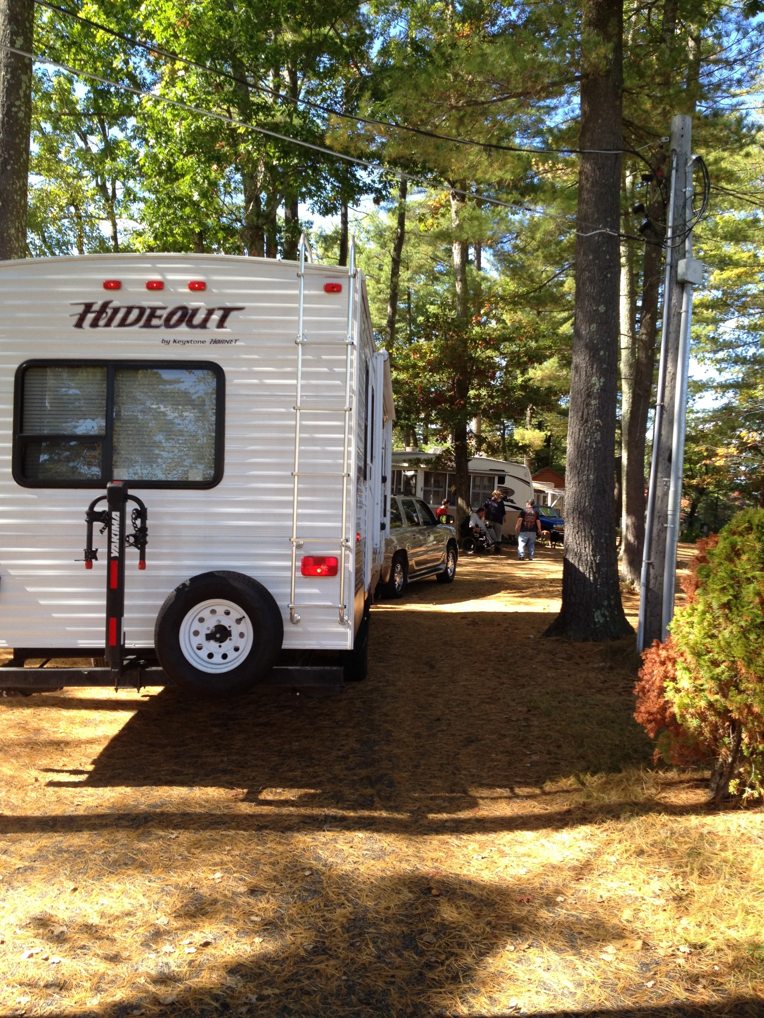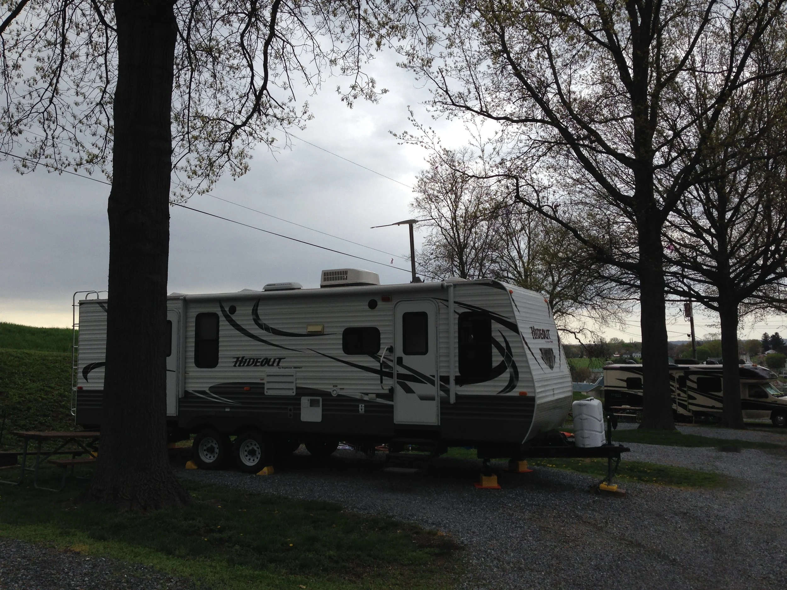 Each site is gravel, allowing water to run off and drain. The road in the park has plenty of room for getting around with out other RV’s being in the way.