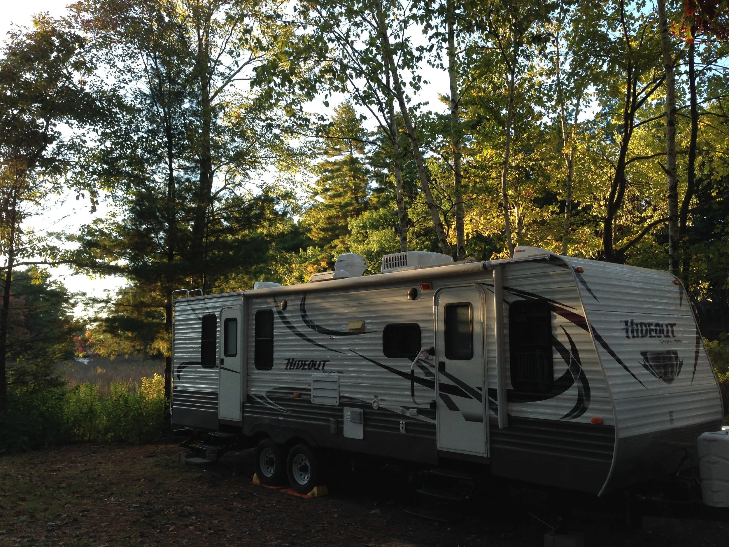 Plenty of space with ultra long parking spaces. Enough room, to extend your slides, and steps, and not worry about people hitting them as they drive by.